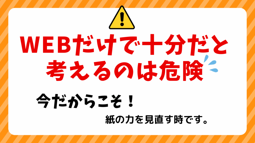 この数年、集客といえば「ホームページ」「SNS」「Google広告」など、WEB施策が主流になっています。もちろんWEB集客は欠かせません。しかし―― WEBだけで十分だと考えるのは危険です。
