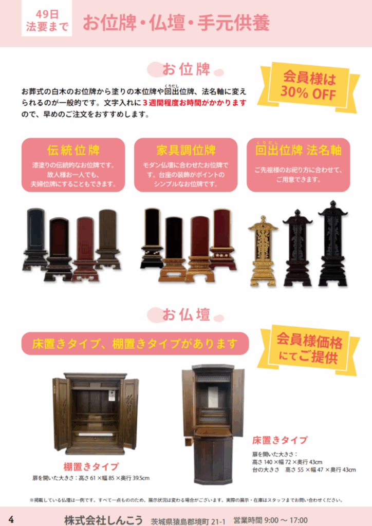 パンフレットで流れを整理し、相談しやすい環境を整えることが、法要受注・仏壇仏具販売・終活支援などの次の売上につながります。