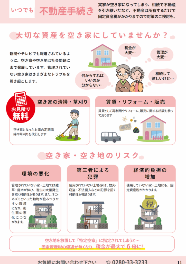 今回のパンフレットの特徴は、表紙に「葬儀後に見落としがちなこと」をまとめて掲載している点です。相続、遺品整理、不動産手続きなど、多くの方が後回しにしてしまいがちな項目を一覧化することで、「どこまで進めればよいか」「次に何をすべきか」を意識できるようにしています。
